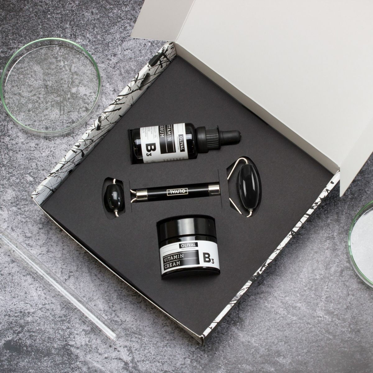 Za skincare ljubitelje tu su Professional set B3 koji sadrži Vitaminski serum B3 te Vitaminsku kremu B3 uz masažer za lice od crnog opsidijana. Serum B3 obožavaju svi oni kojima je koža sklona nepravilnostima i crvenilu, a uz niacinamid u formulaciji ovog seruma je i manje poznata, ali iznimno učinovita traneksamična kiselina.