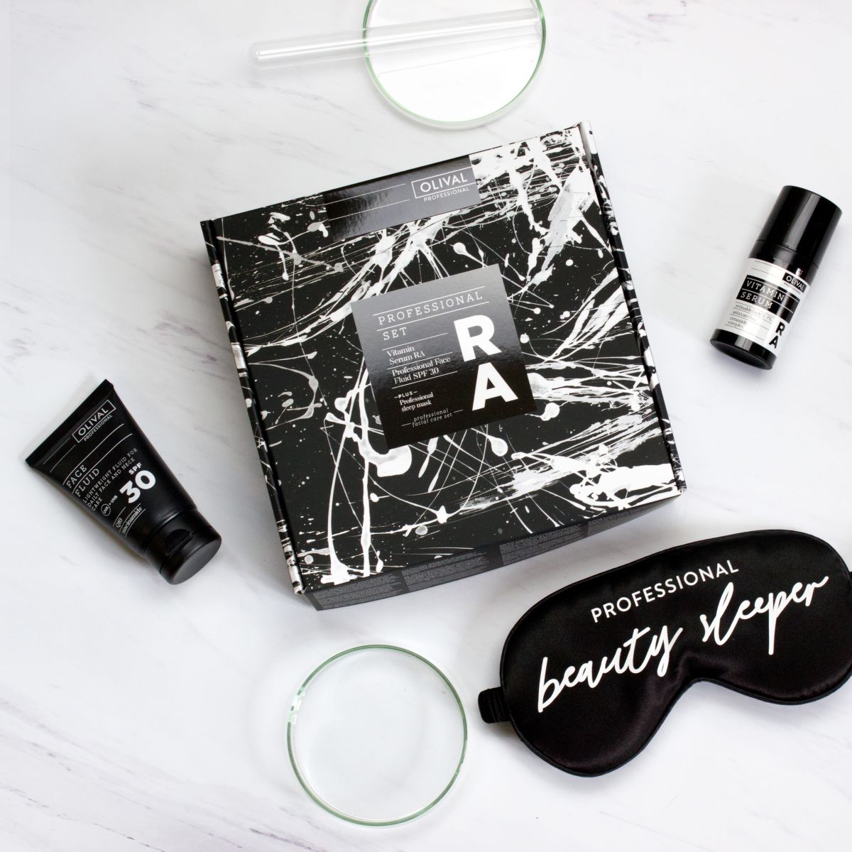 Professional set RA, uz kultni Vitaminski serum RA koji je jedan od najdjelotvornijih anti-ageing seruma zahvaljujući prije svega ključnom sastojku retinalu i to u koncentraciji od 0,1%, sadrži i fluid sa SPF-om 30 kako bi se dodatno naglasila važnost neizostavnog korištenja proizvoda sa zaštitnim faktorom uz proizvode s retinoidima. A da bi nakon večernje beauty rutine uživali u zasluženom odmoru, tu je maska za spavanje.