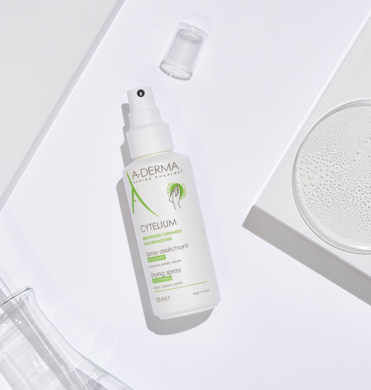 A-DERMA Cytelium sprej koristi se za njegu kože kod različitih oblika vlažnih iritacija poput pelenskog osipa i nadraženosti u kožnim pregibima. Sadrži čak 99% sastojaka prirodnog podrijetla, ne boji kožu i ne ometa prirodni proces zacjeljivanja.